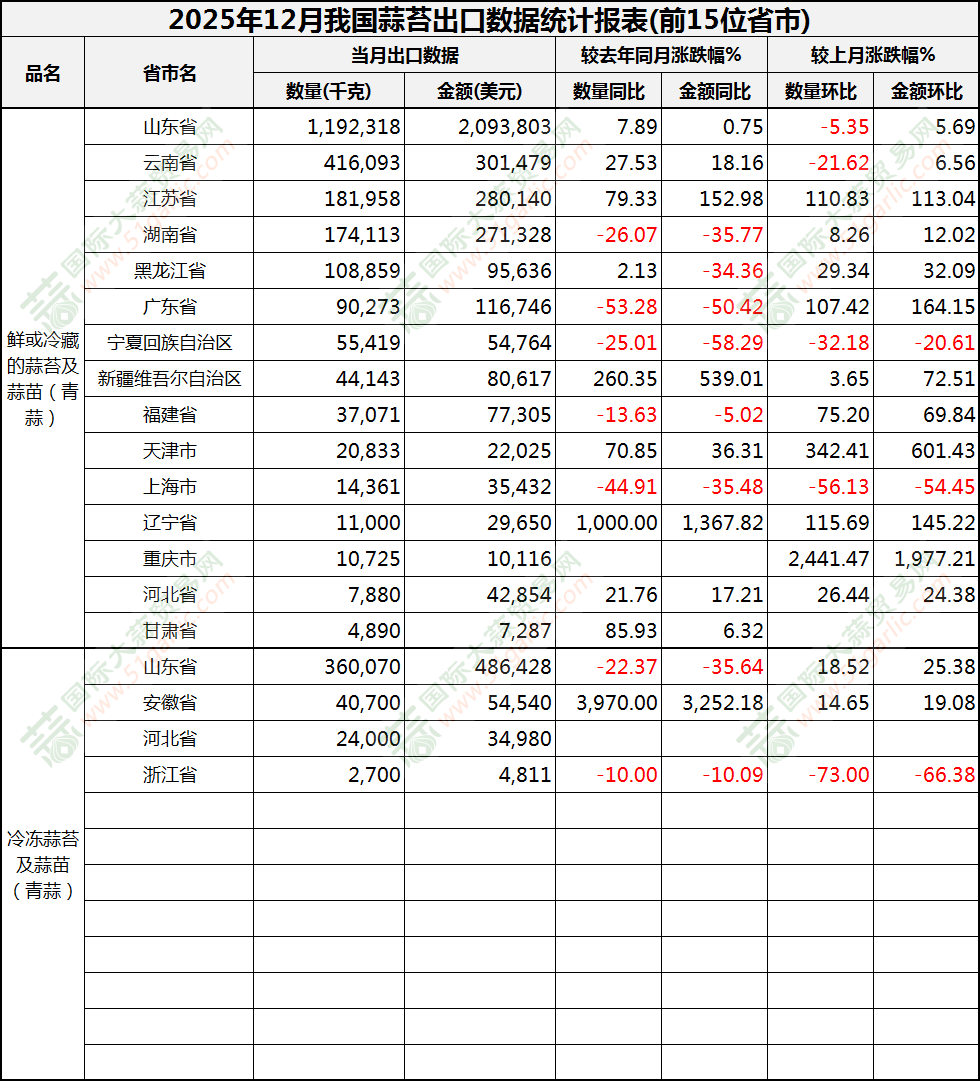 2025年12月蒜苔出口數(shù)據(jù)(按省市)