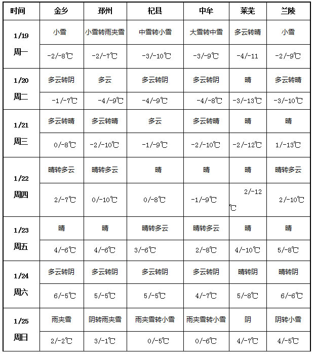 本周(1 月 19 日 - 25 日)金鄉(xiāng)、邳州、杞縣、中牟、萊蕪、蘭陵等大蒜主產(chǎn)區(qū)天氣呈現(xiàn)顯著的階段性波動:1 月 19 日(周一)率先迎來大范圍雨雪天氣,中牟出現(xiàn)大雪轉(zhuǎn)中雪,杞縣為中雪轉(zhuǎn)小雪,金鄉(xiāng)、蘭陵飄起小雪,邳州則是小雪轉(zhuǎn)雨夾雪,僅萊蕪以多云轉(zhuǎn)晴為主,當日氣溫跌入嚴寒區(qū)間,最高溫僅 - 2~-4℃,最低溫普遍在 - 7~-11℃;1 月 20 日 - 23 日(周二至周五),天氣逐步轉(zhuǎn)好,多地由多云轉(zhuǎn)陰或轉(zhuǎn)晴,萊蕪、蘭陵維持晴好天氣,氣溫先抑后揚,20-21 日最高溫仍在 - 1~1℃徘徊,最低溫甚至跌至 - 13℃,22-23 日最高溫回升至 0~5℃,蘭陵最高達 5℃,光照條件明顯改善;1 月 24 日 - 25 日(周六至周日),產(chǎn)區(qū)再次迎來雨雪降溫,金鄉(xiāng)、邳州出現(xiàn)雨夾雪,杞縣、中牟為雨夾雪轉(zhuǎn)小雪,蘭陵由陰轉(zhuǎn)小雪,僅萊蕪為陰天,氣溫大幅回落,最高溫降至 2~4℃,最低溫在 - 1~-7℃區(qū)間波動。