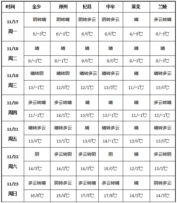 本周(11 月 17 日 - 23 日),金鄉(xiāng)、邳州、杞縣、中牟、萊蕪、蘭陵等產(chǎn)區(qū),天氣將以晴好或多云為主。周內(nèi)受寒潮影響,產(chǎn)區(qū)氣溫較上周大幅下降,局部地區(qū)降溫幅度達 10℃左右。11 月 17 日 - 18 日,寒意顯著。19 日之后,氣溫整體呈回升趨勢,多地最高氣溫從月初的 5 - 9℃升至周末的 14 - 17℃,最低氣溫也從零下回升至 0 - 8℃。全周無降水。